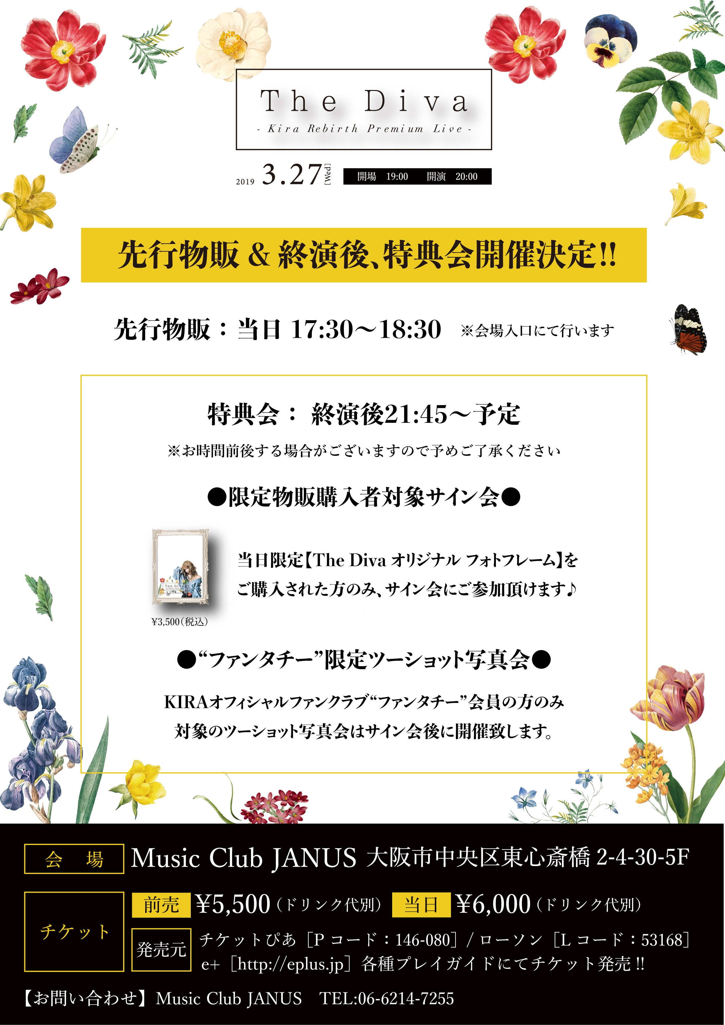 The Diva(ザ・ディーバ) -Kira Rebirth Premium Live- 先行物販&終演後、特典会開催決定!!