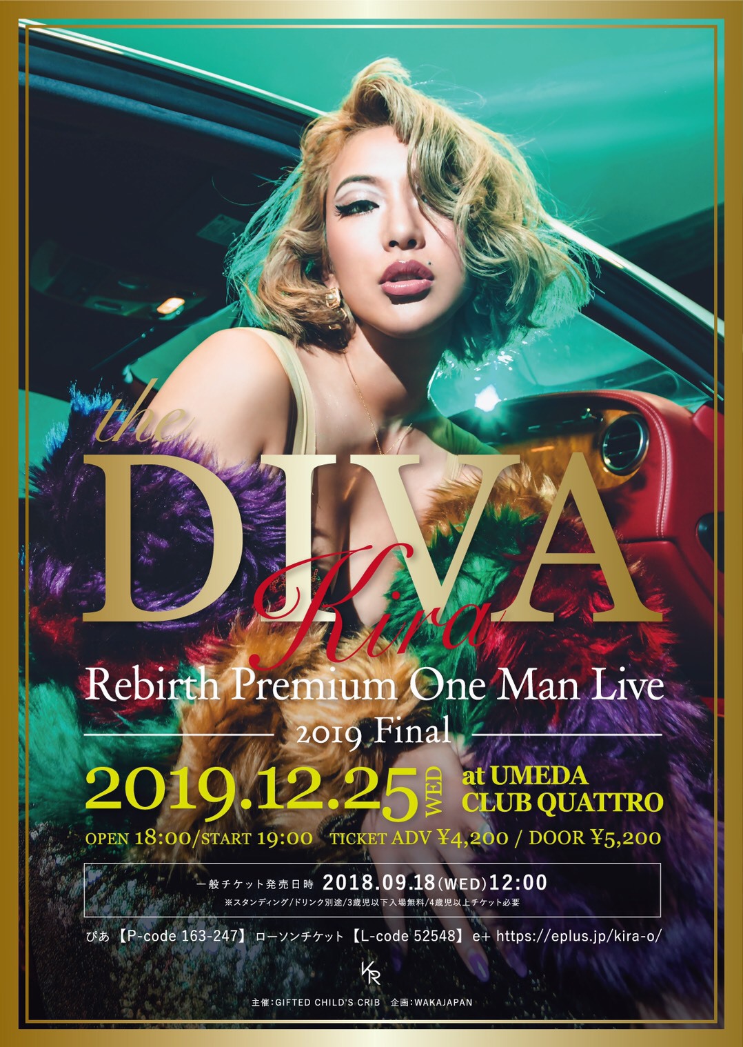 [The Diva(ザ・ディーバ) -Kira Rebirth Premium One Man Live- 2019 Final]9月18日(水)PM 12:00より一般チケット発売開始!!