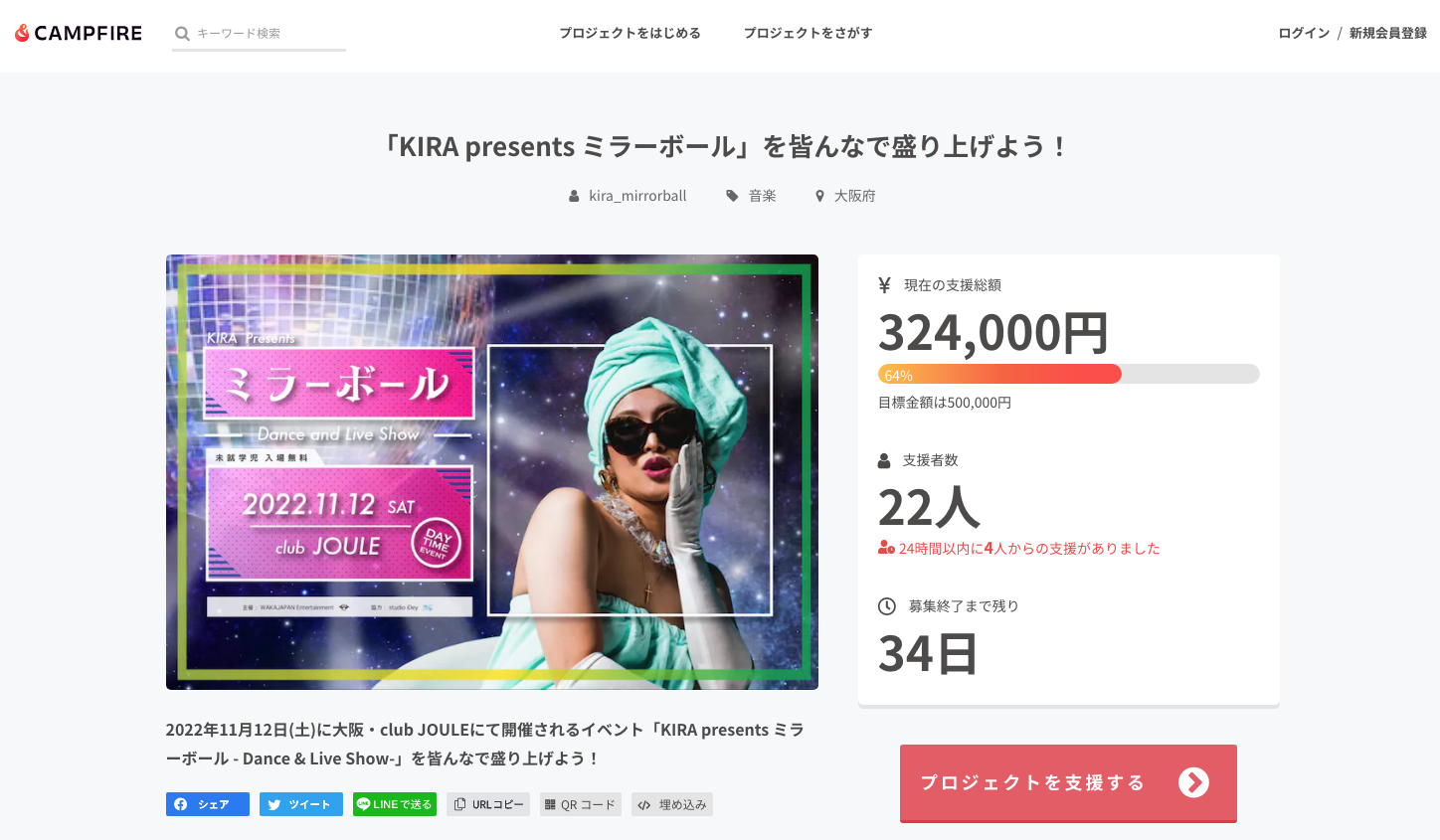 ミラーボール:クラウドファンディング募集中! 2022年09月08日 【クラウドファンディング募集中】 KIRA主催イベント『"ミラーボール" - Dance & Live Show -』 をみんなで盛り上げよう! ▼more info https://camp-fire.jp/projects/view/615130